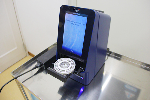 血液の生化学検査に用います。一度に最大5検体(5動物分)の検査が可能なため、検査での待ち時間の短縮になります。