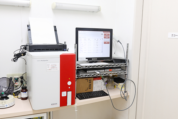 血液細胞の計算と測定を2分間で行う機械です。白血球の5分類、網状赤血球(若い赤血球)、猫の血小板、ウサギなどのエキゾチック動物の血球細胞の測定にも対応した血球計算装置です。