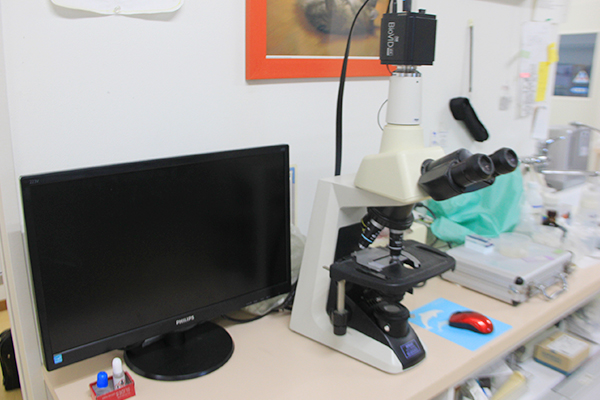 顕微鏡検査で認められた異常をモニタに映し出して、飼主様へご説明します。
